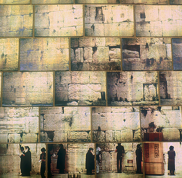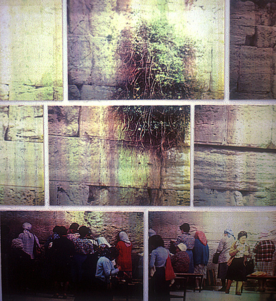 This piece attempts to examine a cultural and religious icon that has had a far-reaching influence on political events today. The Wailing Wall is all that is left of Herod's temple, build on the site of the temple of Solomon. Herod's temple was destroyed by the Romans in the first century, and this section of the wall was left to remind the Jews and, I think, posterity of the extent of Roman power. Following the Diaspora, the wall assumed a special political/religious significance for Judaism, which it has retained to this day. The Wailing Wall provides an apt metaphor for political impasse: because it stands in east Jerusalem, that section of the city is non-negotiable in political bargaining. Notes of prayer are slipped between the masonry by those gathered at the base, men to the left and women segregated to the right.