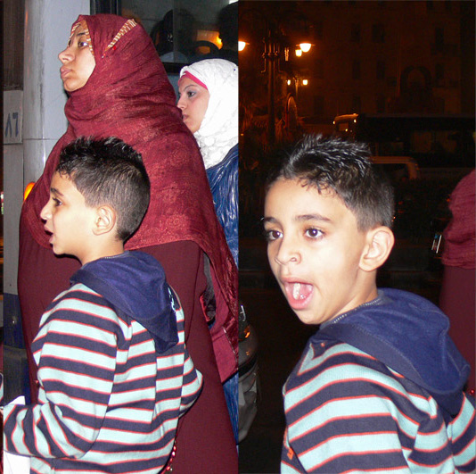 Given its importance as a principal fount for the West's view of the world, the Martian tourist may be puzzled not to see many Earthling tourists in Alexandria, and nowhere more so than the place where these photos were taken of two women and a child at what is now a downtown bus stop.