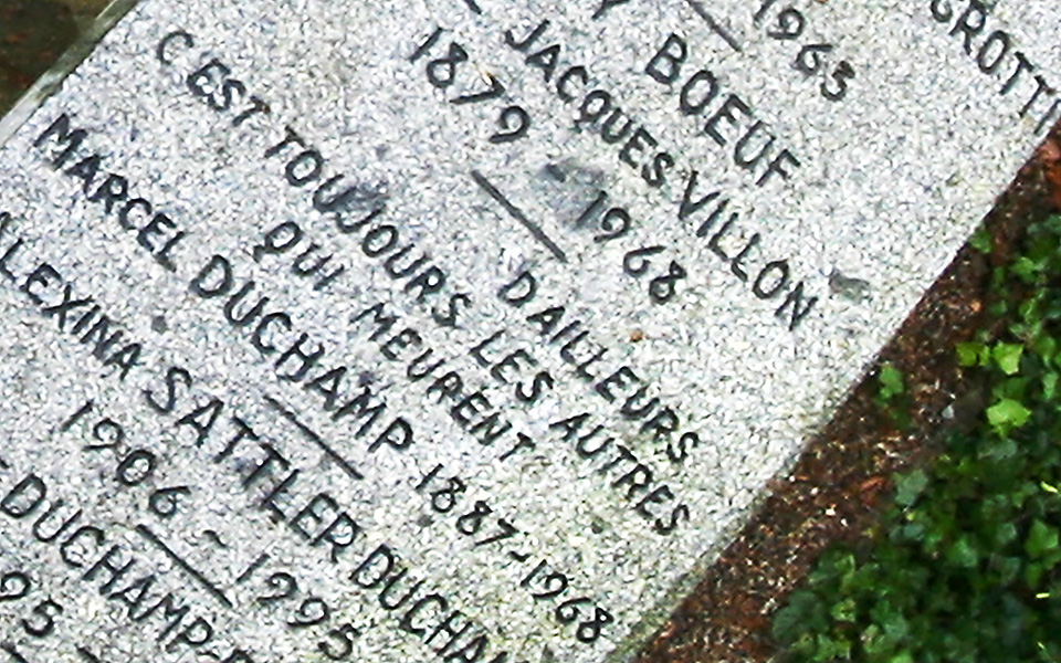 At the edge of a cemetery in Rouen may be found the tomb of Marcel Duchamp and his relatives, including his wife, 'Teeny' Sattler, his sister Suzanne and his brothers Jacques and Raymond.
